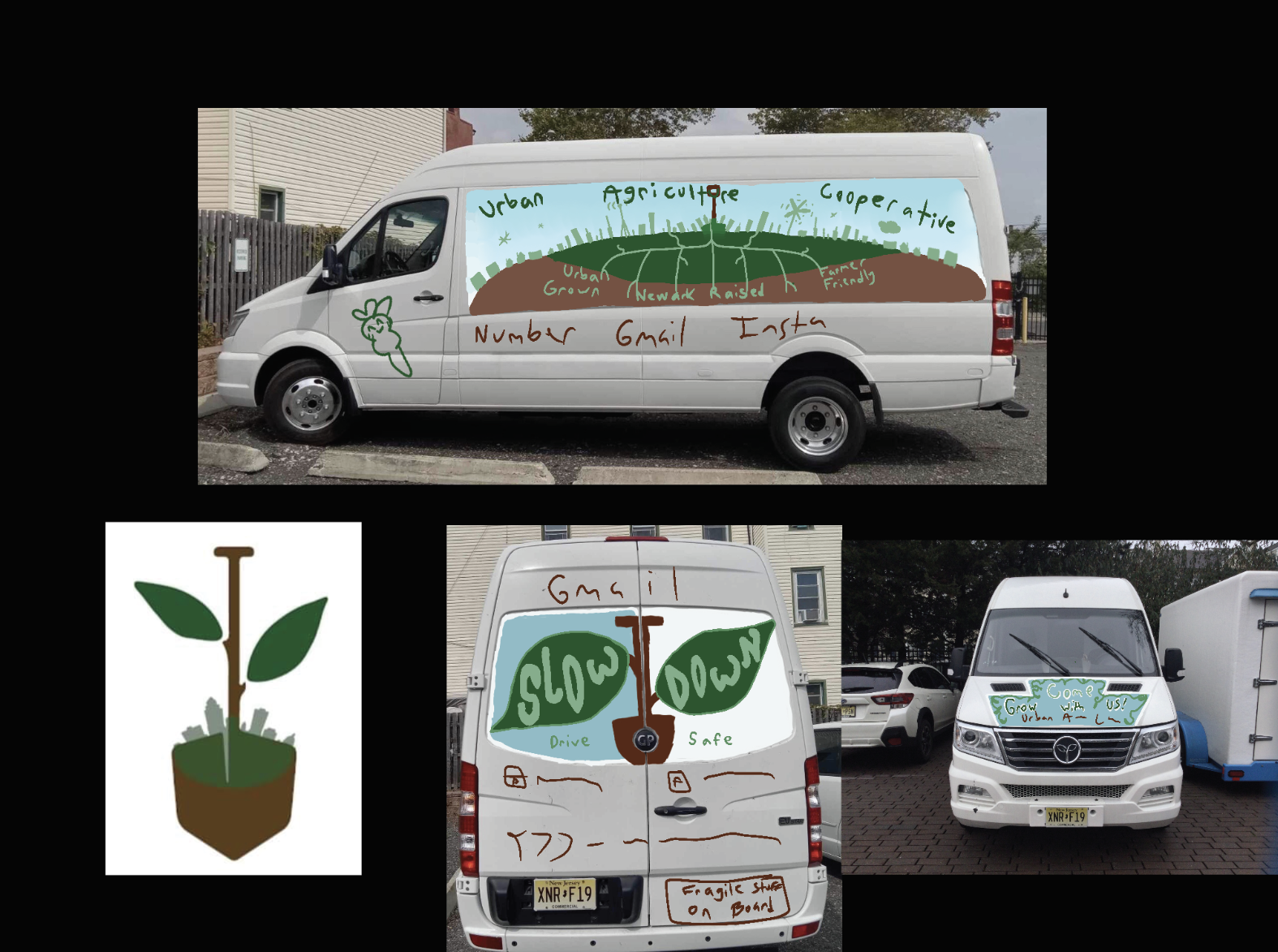 Serena is the name of our delivery van that we use to travel all around New Jersey delivering our veggie produce boxes to our many drop-off locations or picking up handmade goods from local producers or farmers, and she desperately needed a makeover! The design we made as a team, myself & two other designers, for UAC allowed their brand to be more visible on the road. We found it necessary to display all of their contact information, logo, and hand-drawn aesthetics of the cardboard boxes we use themselves. We transformed Serena from a white blank canvas to an illustrative icon after the decal was wrapped around this van.